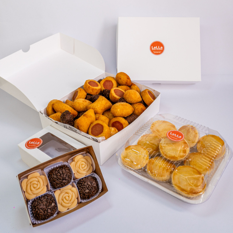 Kit 40 Salgadinhos Fritos + 10 Empadinhas De Frango + 6 Docinhos
