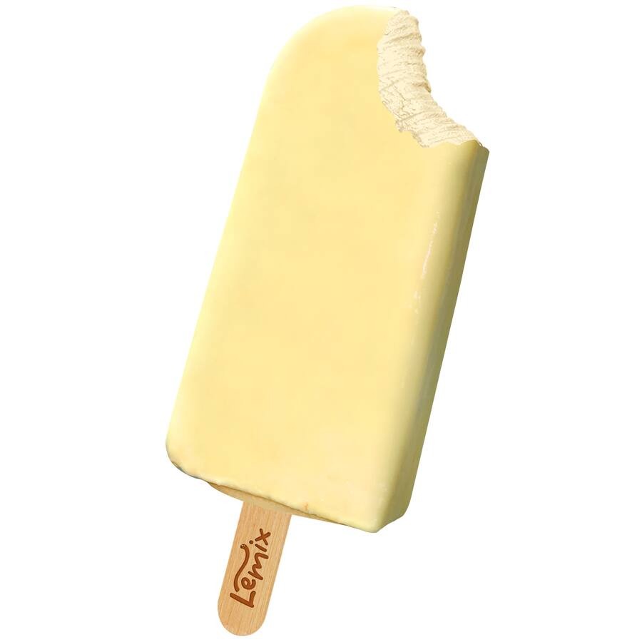 Picolé de torta de limão coberto com chocolate branco. Sobremesa no palito! Não contém Glúten. Contém Lactose.