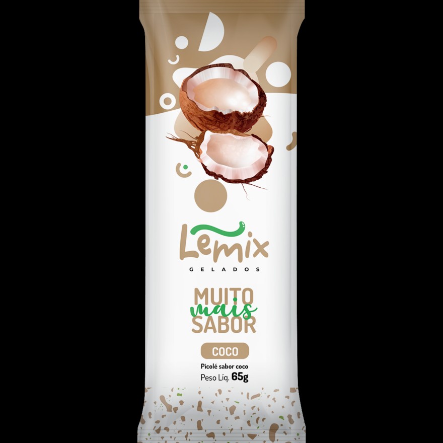 Picolé de coco. Feito com leite de coco fresco, sem saborizantes, corantes ou conservantes. Não contém Glúten. Contém Lactose.