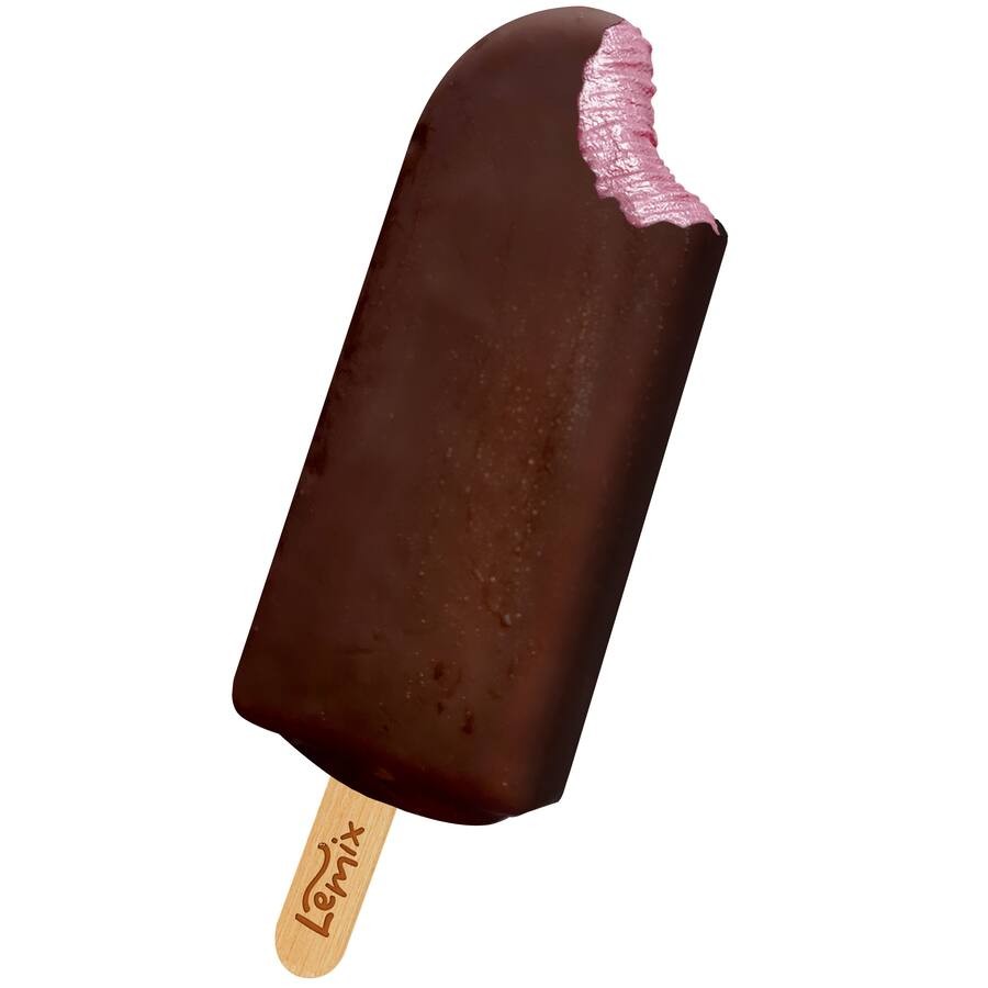 Picolé de morango coberto com chocolate. Feito da fruta! Não contém Glúten. Contém Lactose.