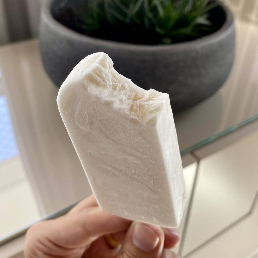 Picolé cremoso de coco, feito com leite de coco artesanal.