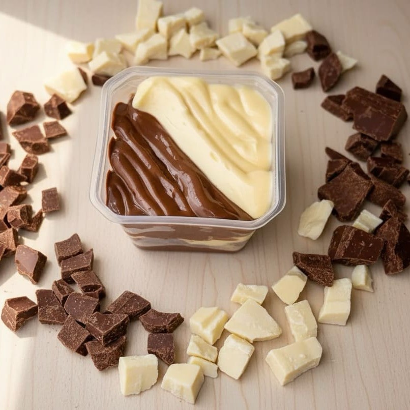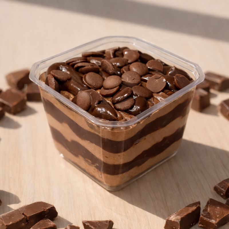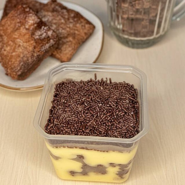 Uma releitura do clássico bolo mármore francês, em versão pote! Camadas macias com mescla de brigadeiro branco e brigadeiro tradicional. Cremoso, intenso e perfeito pra quem ama equilíbrio entre chocolate e carinho.