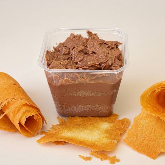 Uma versão especial da clássica charlotte, feita com camadas de chantilly de chocolate leve e cremosa, intercaladas com brigadeiro de chocolate intenso e biscuit champagne. Finalizada com pedaços de chocolate e um delicioso fio de brigadeiro por cima. Sobremesa perfeita para quem ama chocolate!
