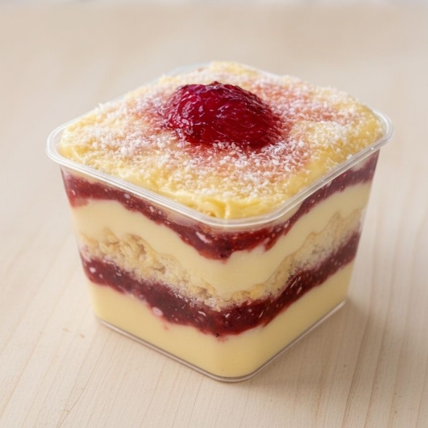 Nosso bolo de pote morango e coco é feito com camadas generosas de bolo branco macio, brigadeiro de chocolate branco cremoso com coco ralado e uma deliciosa geleia de morango artesanal. Uma combinação equilibrada, suave e cheia de sabor, perfeita para quem ama sobremesas delicadas e bem recheadas.