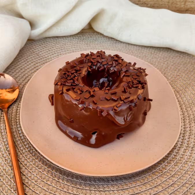 Preparada com esmero, possui um doce equilibrado que harmoniza perfeitamente com um café fresco. A cobertura é um luxuoso chocolate cremoso, com 50% de teor de cacau, finalizado com um granulado de chocolate puro, adicionando uma textura irresistível ao bolo.