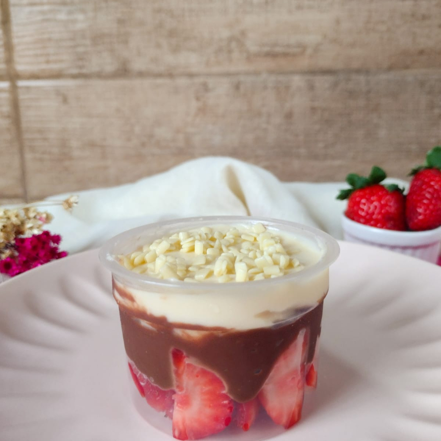 Cremosidade e sabor em cada camada! Nossa sobremesa de morangos frescos, creme de Ninho e um irresistível creme de chocolate na cobertura, finalizada com granulado de chocolate. Cada porção tem 135gr de puro prazer. Tags: promoção, oferta, melhor bolo no pote, doce, sobremesa, chocolate, entrega rápida, comemoração, doce, prestigio, coco, bolo de chocolate, gratis, gratuito, pote da felicidade, torta, fatia, fatia de bolo, fatia de torta, chocolate ao leite, sobremesa, torta