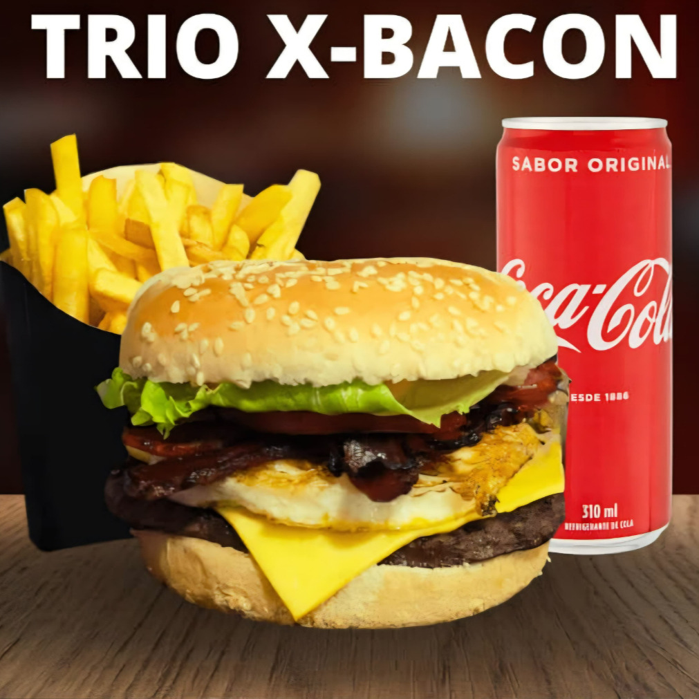 1 X-bacon, 1 Batata pp, 1 Refri Lata 350Ml