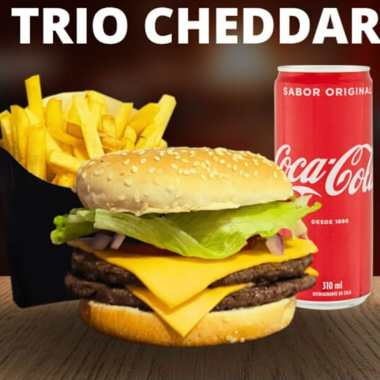 1 Cheddar duplo, 1 Batata pp, 1 Refri Lata 350Ml