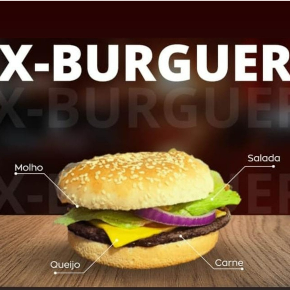 Pão de gergelim, 1 carne, 1 queijo, salada e molho da casa