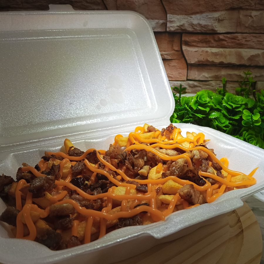 São 400 gramas de batatas fininhas e crocrantes,adicionado de bacon e cheddar