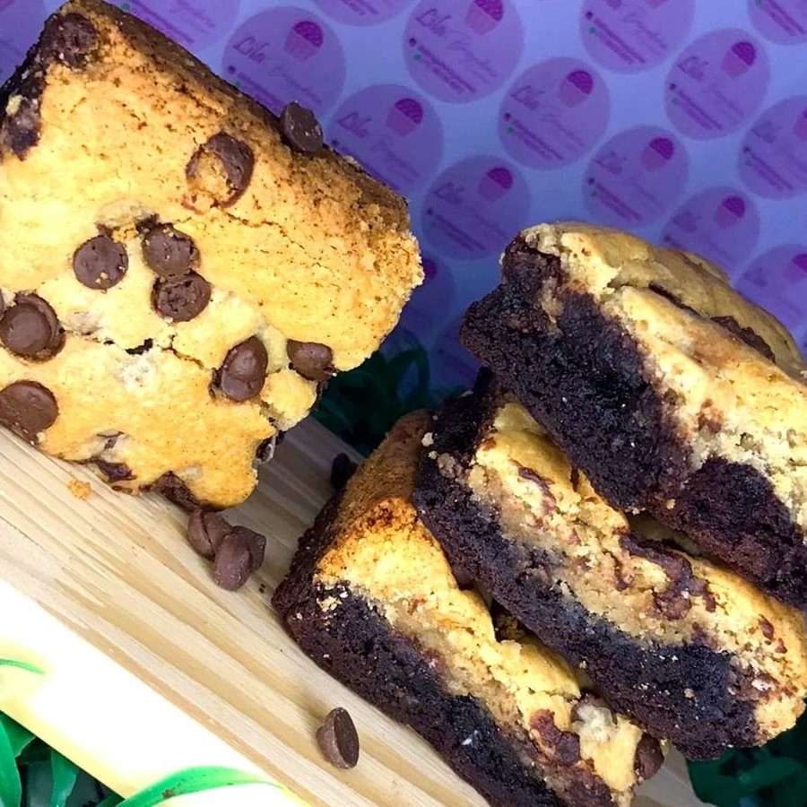 Se só o Brownie já é uma delicia, imagina o Brownie acompanhado com cookie, tem um sabor irresistível, macio por dentro e crocante por fora, quem come se apaixona. Nosso Brownie é feito com cacau 100% e do cookie é uma massa amanteigada com gotas de chocolate sabor Extraordinário. Além de ser um produto não tão conhecido, mas tem um sabor marcante para os apaixonados por Brownie. tamanho 7x7