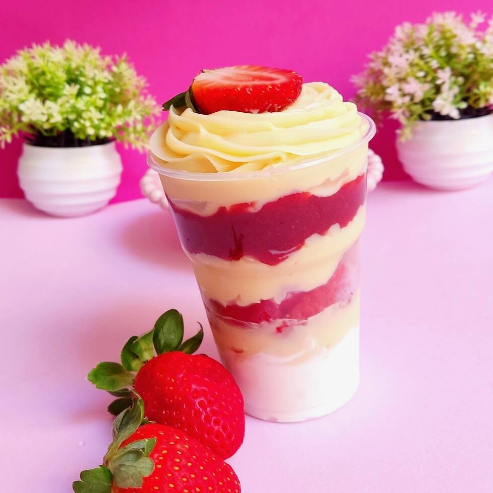 Delicioso bolo de pote de Ninho com morangos frescos, molhadinho, textura irresistível e uma combinação perfeita. Serve 1 pessoa, 220 ml ou 350 ml Escolha o seu copo ideal.