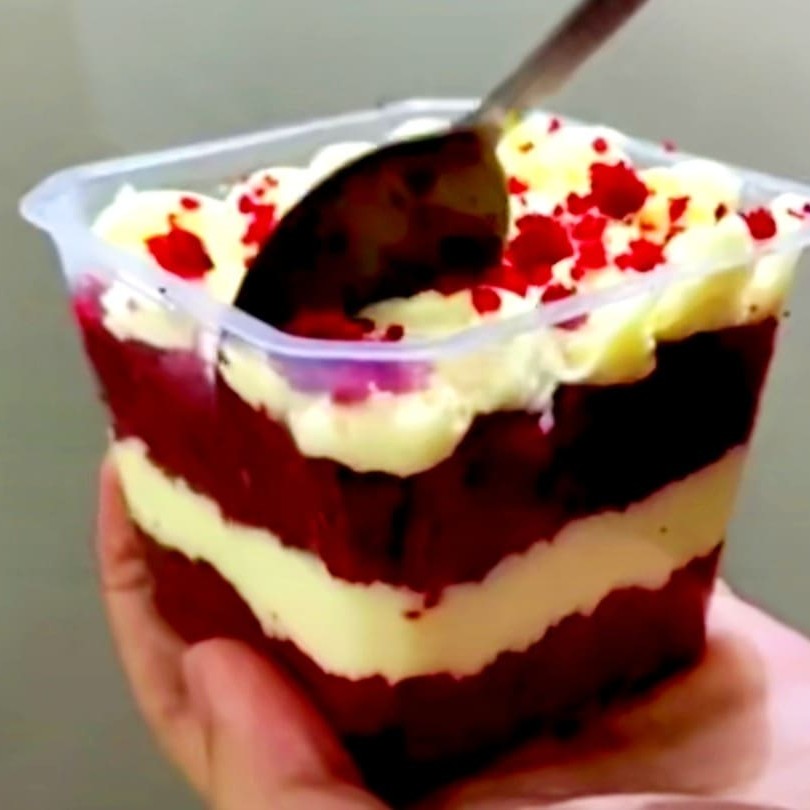 Bolo De pote Red Velvet é um bolo de textura muito leve e macia, levemente amanteigado e com um discreto sabor a chocolate. A sua massa é de cor vermelha, o que contrasta com o branco do creme queijo(cream cheese) no recheio e na cobertura o sabor é irresistível. Serve uma pessoa. Tamanho do copo 220ml peso 190g ou 350ml peso 280g