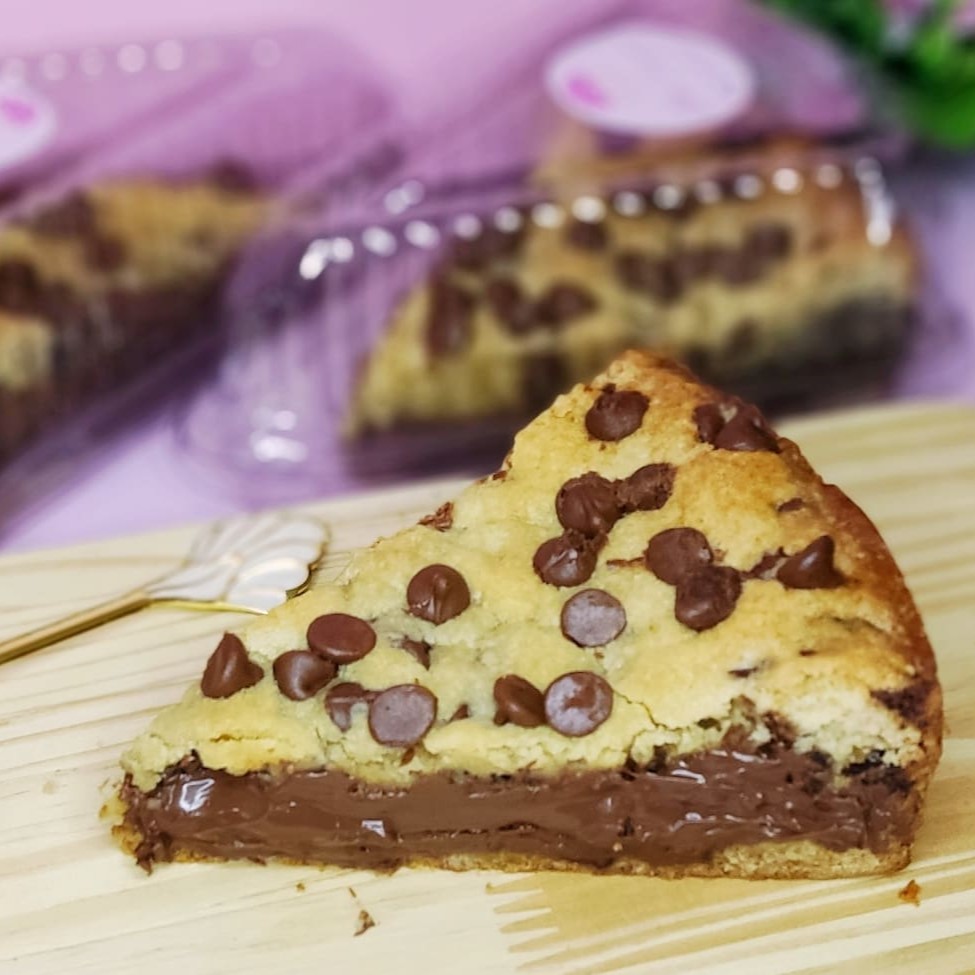 Massa de Biscoito Crocante por fora e úmida por dentro que derrete na boca, cheios de gotinhas de chocolate e recheio de Nutella super cremoso, generoso e delicioso.