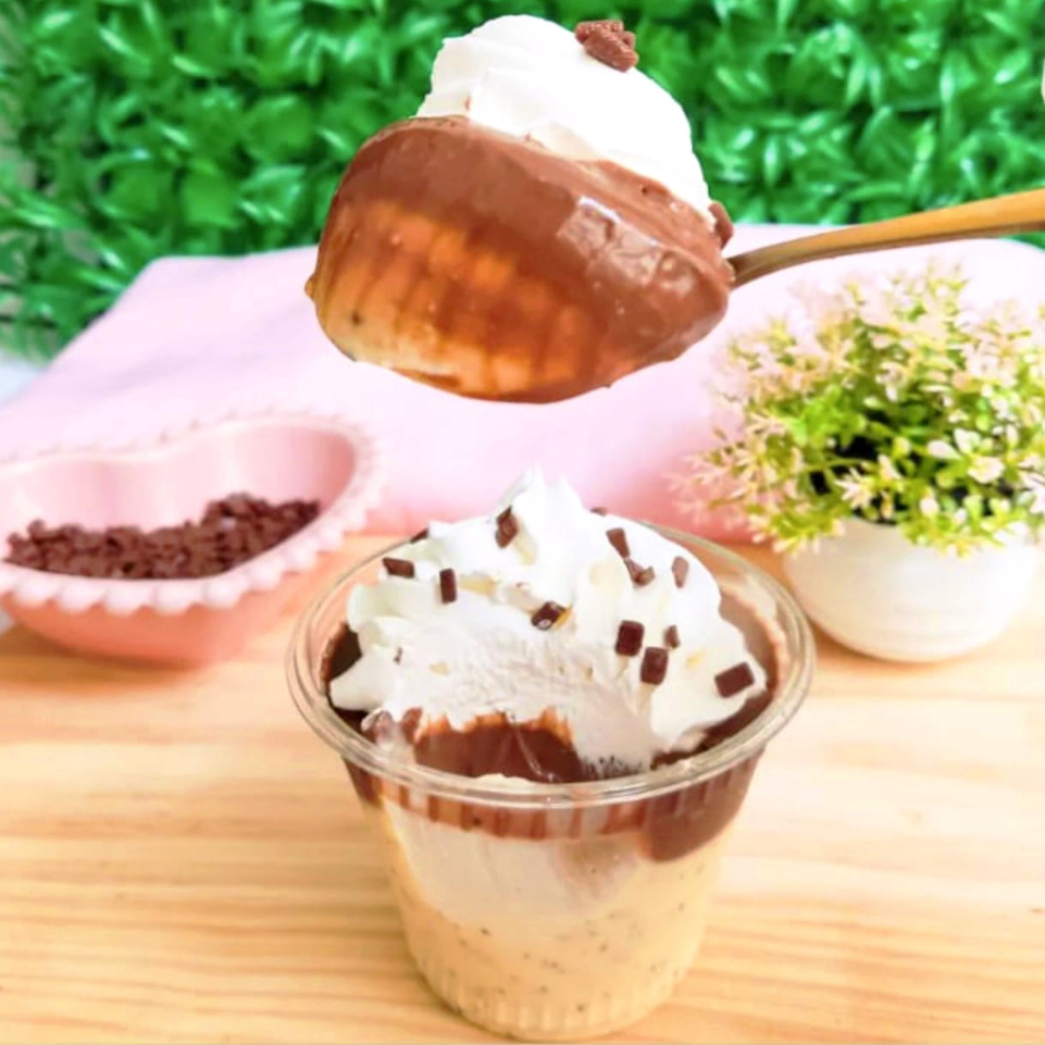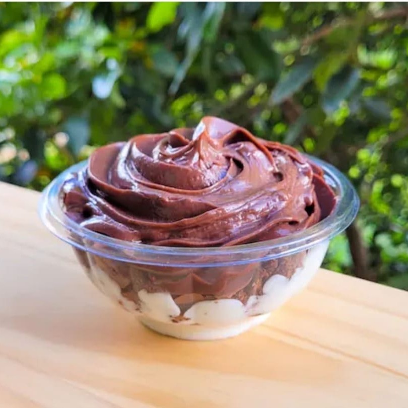 O 'Afogadinho de Brownie' é uma divina tentação, capaz de cativar qualquer paladar. este prato leva um suave e cremoso Creme de Ninho, realçado por generosos pedaços de Brownie que conferem uma textura rica e irresistível. A finalização perfeita vem com as deliciosas coberturas de Brigadeiro Tradicional ou Brigadeiro de Ninho, disponíveis para você selecionar de acordo com sua preferência. Cada porção, servida em um recipiente de 250 ml, promete uma experiência de indulgência incomparável. Permita-se desfrutar desta delícia e encante-se com a exuberância desta sobremesa tentadora! Serve 1 pessoa.
