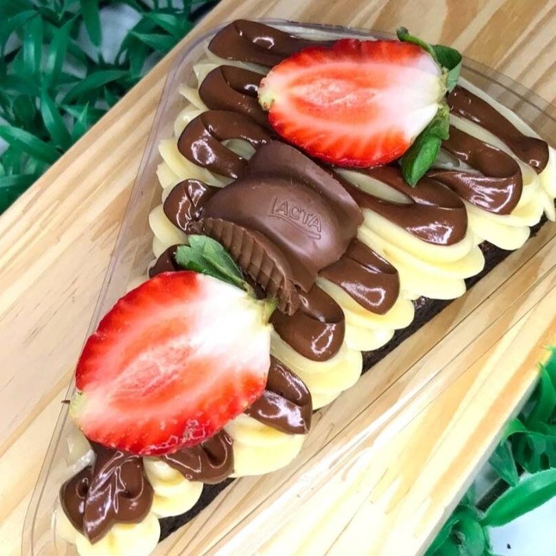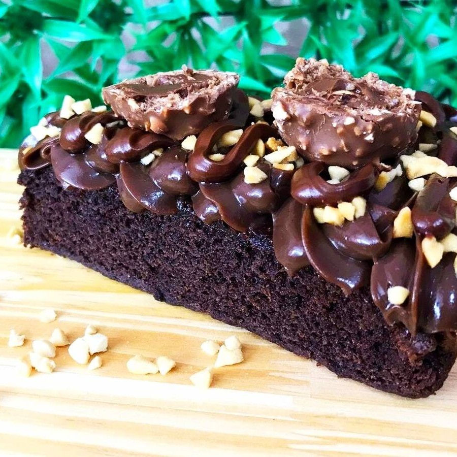 Bolo de chocolate, com generosas camadas de recheio de chocolate nobre. 350ml serve 1 pessoa