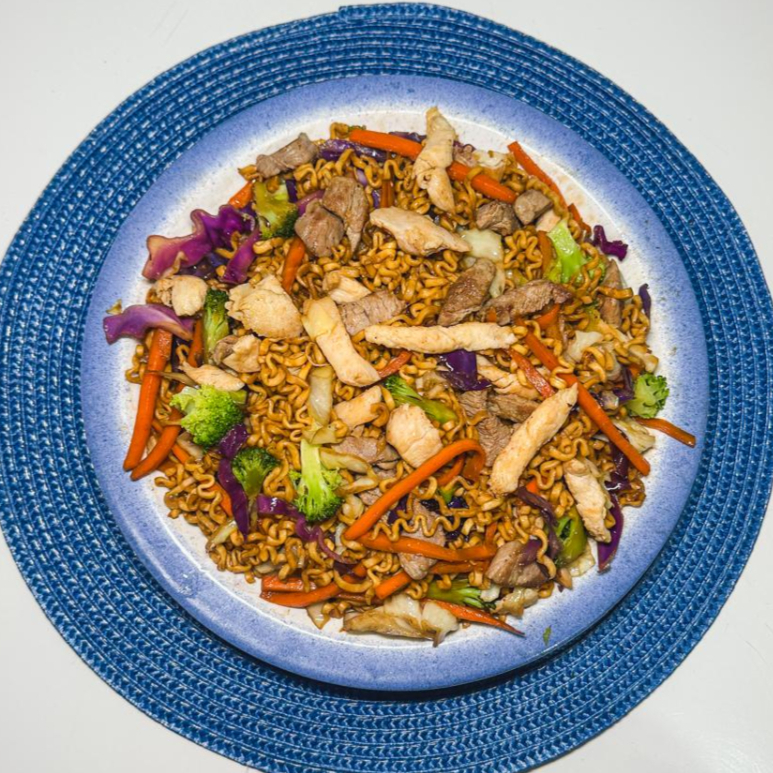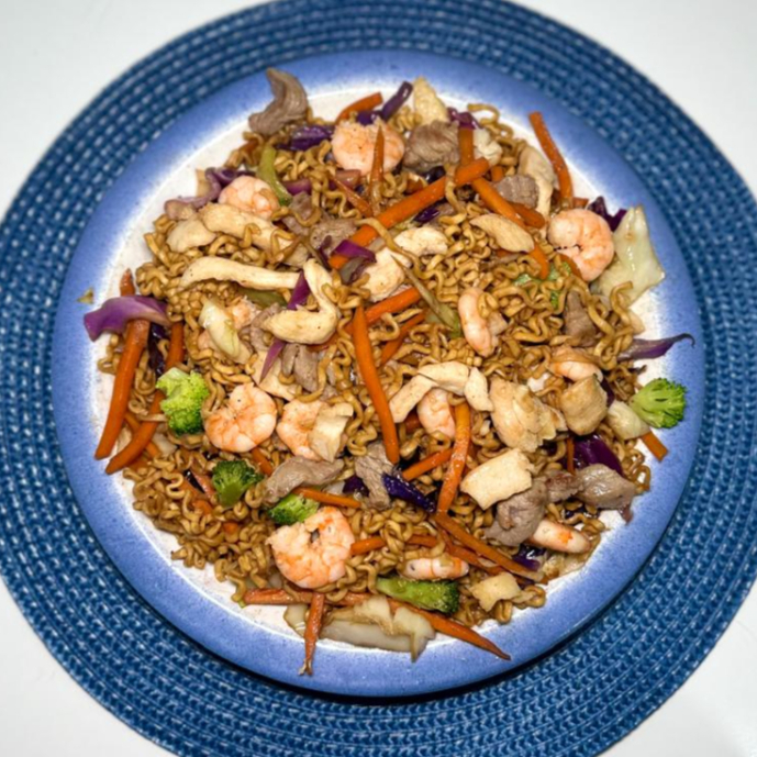 O 'Yakisoba Lui' é um prato surpreendentemente delicioso, repleto de camarão marinado, carne suculenta, frango tenro, cenoura crocante, brócolis fresco e repolho suavemente cozido. Nosso camarão, uma verdadeira estrela do prato, é cuidadosamente temperado com Hondashi, óleo de gergelim Ajinomoto e pasta de alho, que intensificam sua riqueza de sabor. É então marinado durante 24 horas na manteiga, resultando em uma textura incrivelmente suave e um gosto inesquecível. Essa combinação harmoniosa de ingredientes faz do 'Yakisoba Lui' uma escolha irresistível.