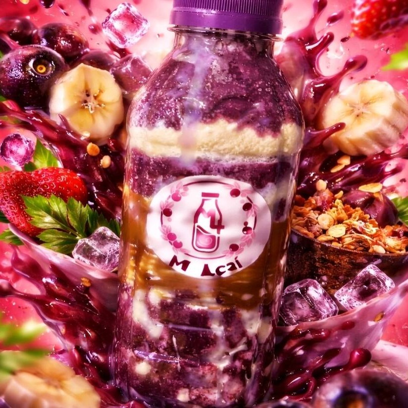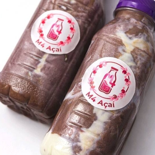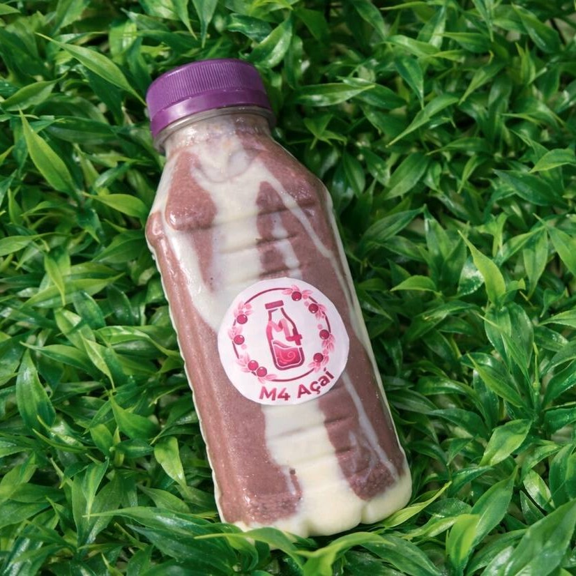 Açai 300ml na garrafa com acompanhamentos de leite condensado e leite em pó