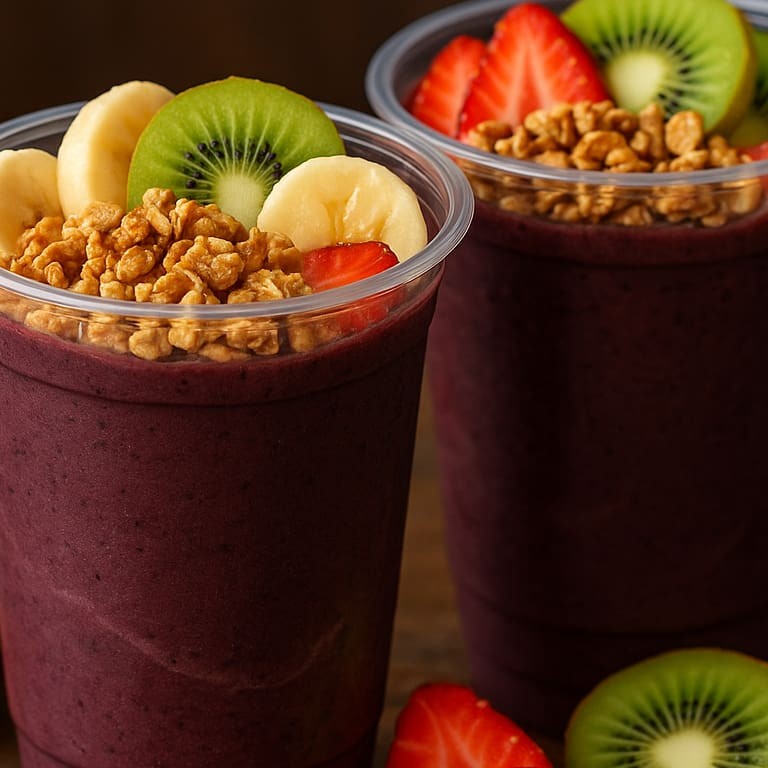Combo 2 açaís 300ml. 4 acompanhamentos ao total, todos os acompanhamentos vão dentro do copo. Imagens meramente ilustrativas.
