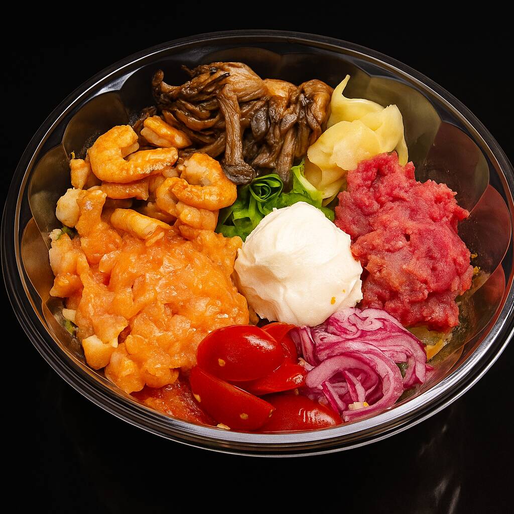(180G DE ARROZ, 40G DE SHIMEJI, 40G CAMARÃO, 40G SPICY DE SALMÃO, 60G SPICY DE ATUM, 20G CREAM CHEESE, 20G PICLES DE CEBOLA , 30G DE TOMATE CEREJA, 20G GENGIBRE, 5G CEBOLINHA.)