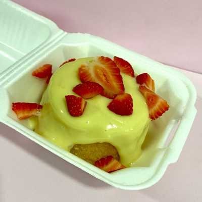 Chocolate e morango uma combinação que não tem erro. Ah! Quem não ama? Massa de chocolate bem fofinha, recheado no centro com geleia de morango, coberto de brigadeiro cremoso e morango fresco. Ainda chega quentinho para você. Aproximadamente: 220g