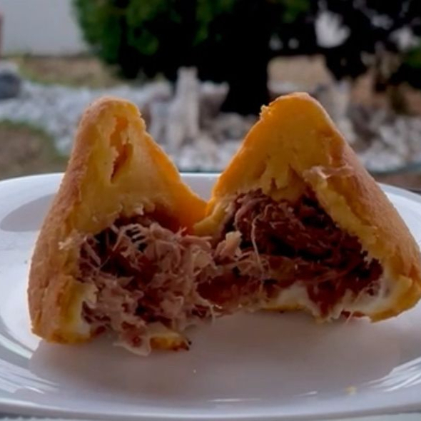 Direto do coração do Nordeste para o seu lanche. Carne seca, banana da terra frita na manteiga e catupiry! Empanada na farinha Panko Peso médio: 150g