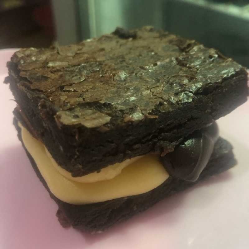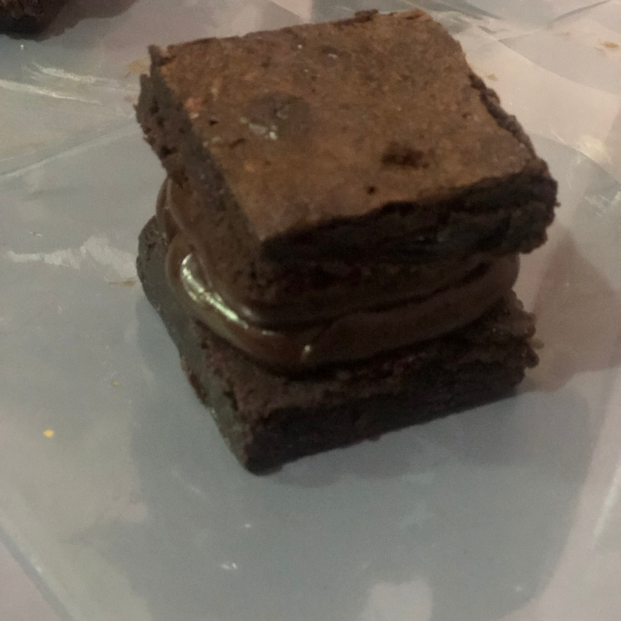 Brawnie molhadinho super recheado com recheio cremoso de chocolate e ninho