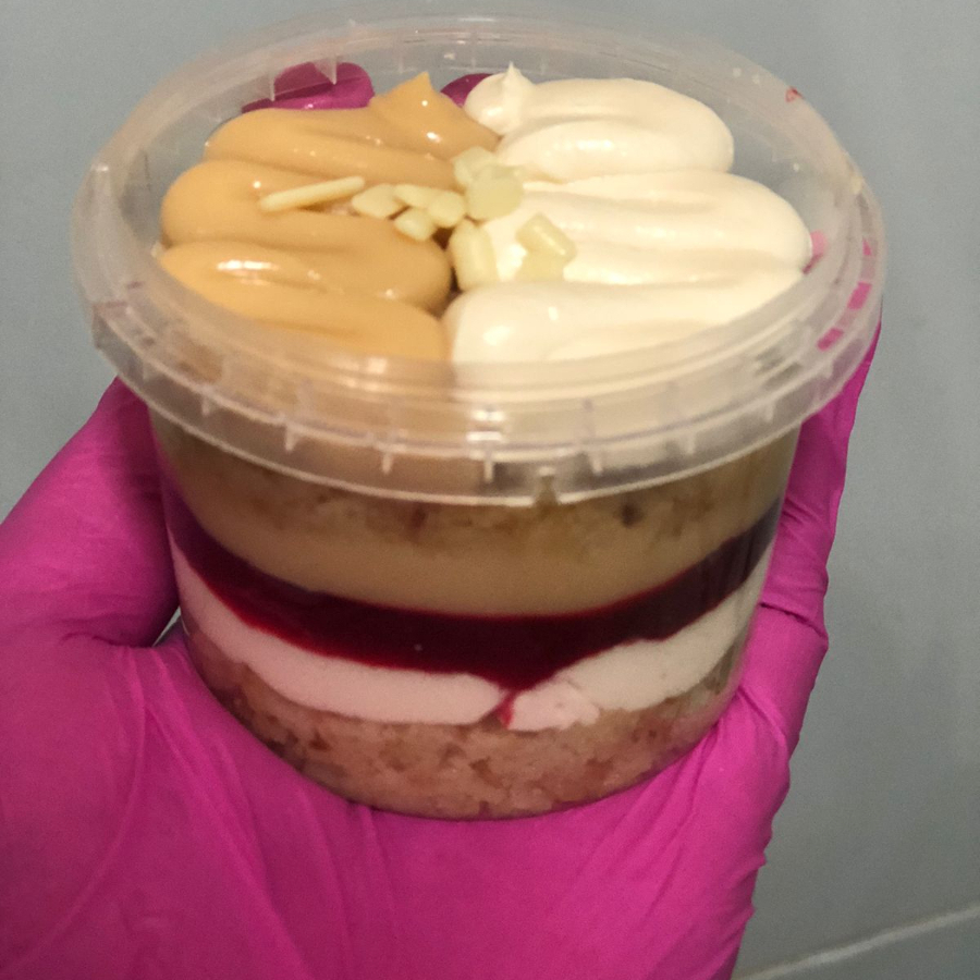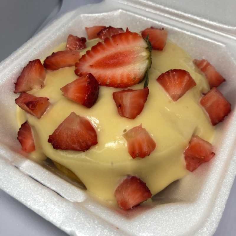massa molhadinha , mousse de ninho , recheio cremoso e geleia de morango aprox 250g