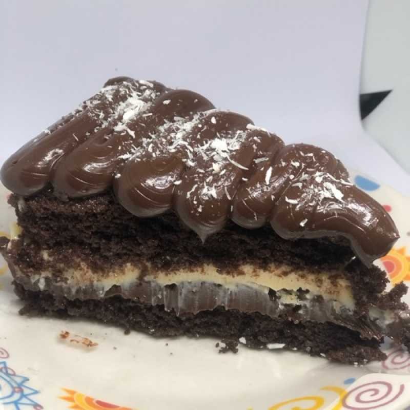 massa molhadinha recheio cremoso de chocolate e beijinho