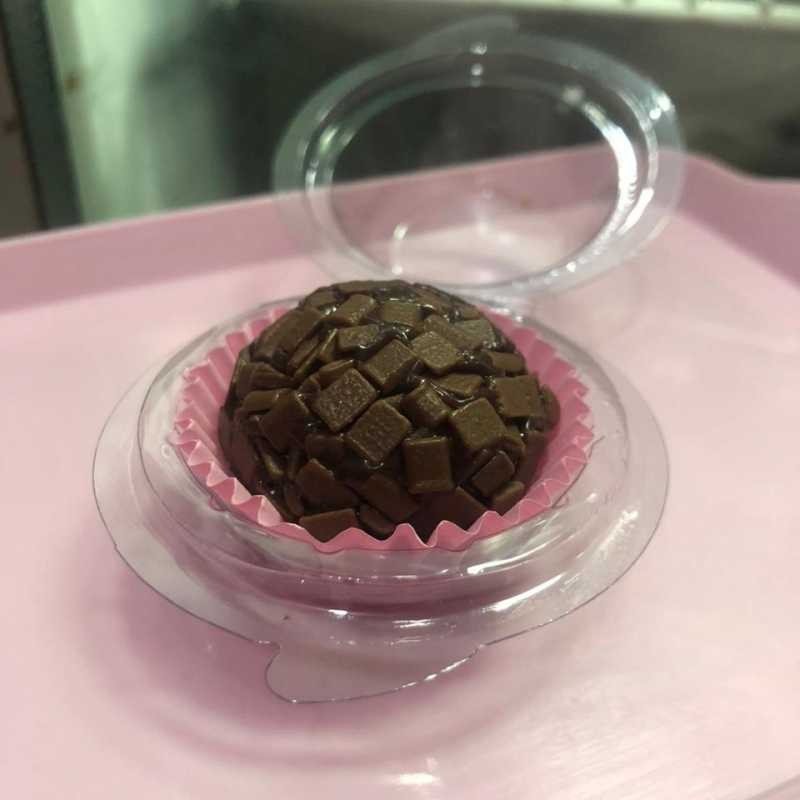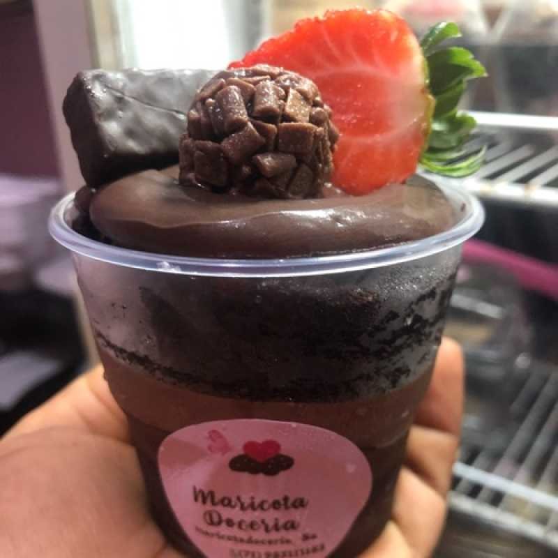 massa de brigadeiro chocolate , morango e granulado ao leite de chocolate nobre