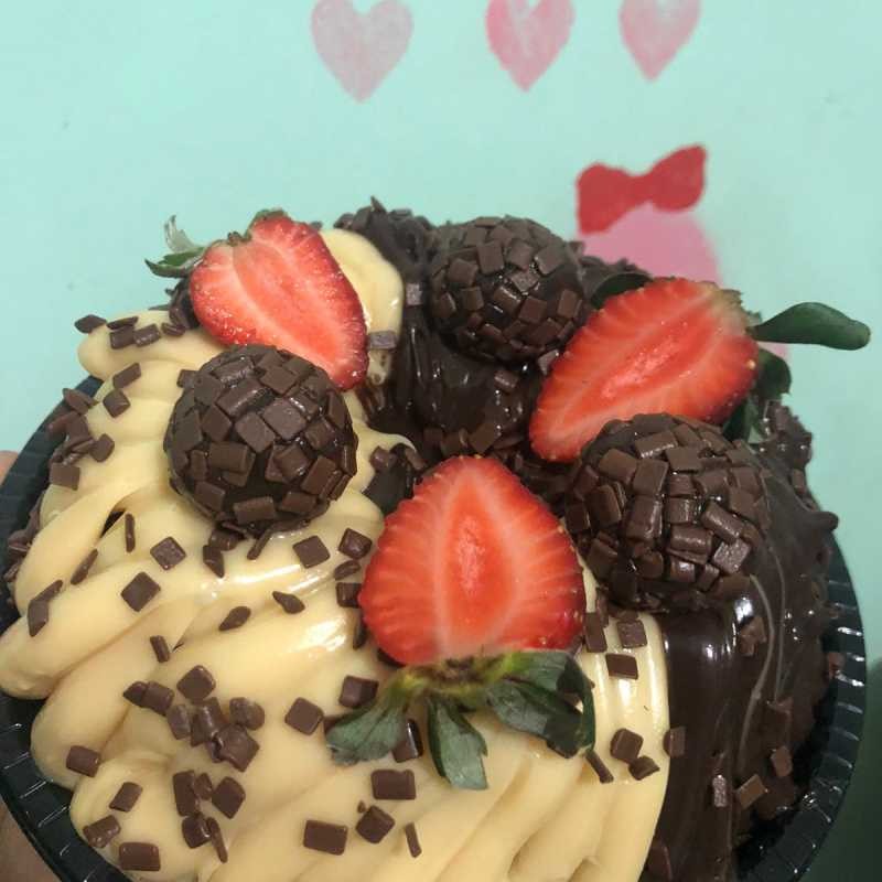 recheio cremoso ninho e chocolate , brawnie e morangos cortados aprox 200g