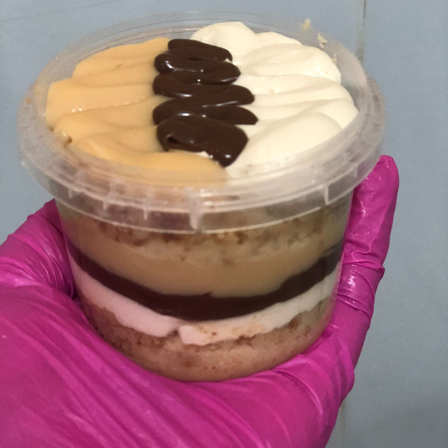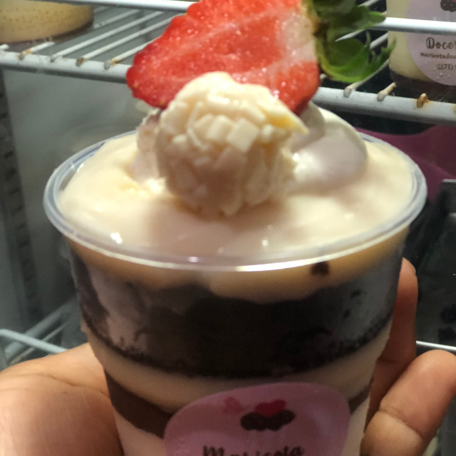 mousse de ninho , creme de ninho , creme de chocolate e brawnie aprox 200g