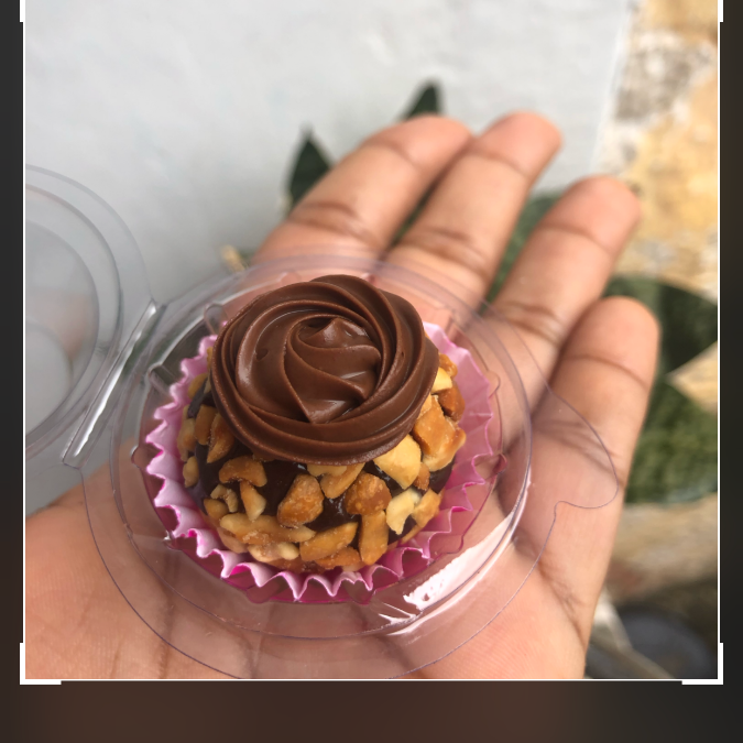 massa de brawnie recheio cremoso de ninho e decorada com brigadeiros gourmet