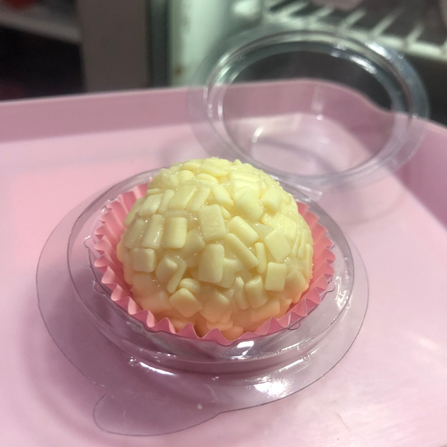 massa de brigadeiro branco , morago e granulado de chocolate branco nobre