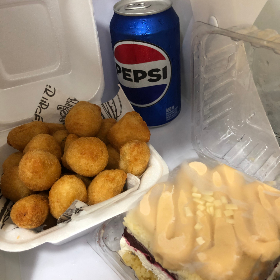 25 minis Salgados , 1 bolo gelado , 1 pepsi lata