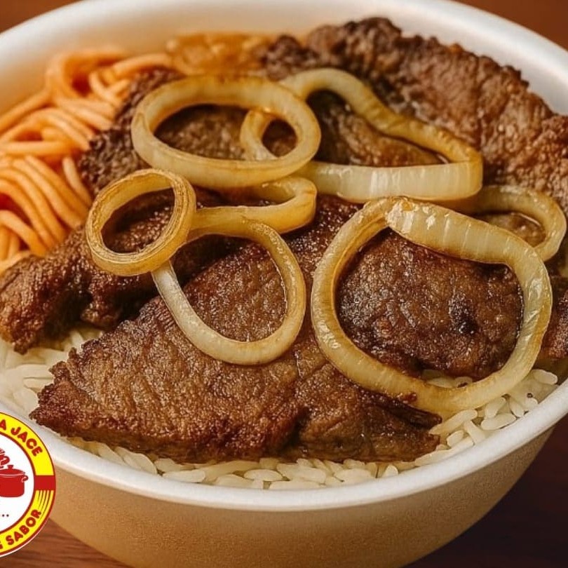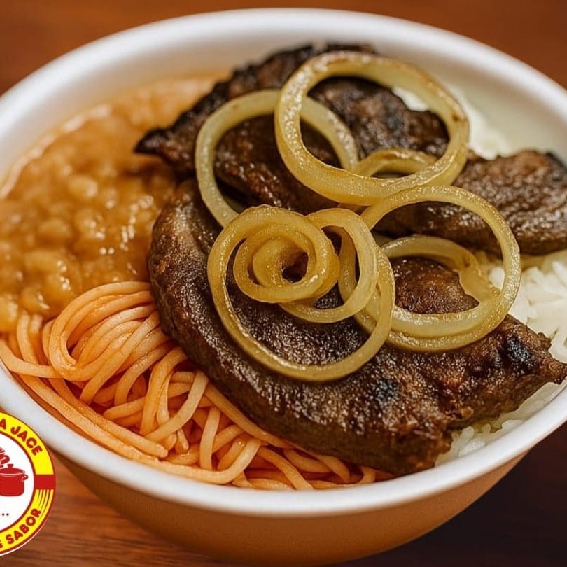 Desfrute de uma suculenta marmita de Bife Acebolado, pesando 600gr, que figura entre as mais vendidas no ! Este prato é composto por um generoso bife de alcatra, meticulosamente preparado ao ponto e enriquecido com cebolas. Além disso, traz quatro opções de acompanhamentos à sua escolha. Composto por 100gr de proteína proveniente da alcatra, 150gr de um saboroso feijão de caldo, 200gr de arroz branco fresco, 100gr de macarrão apetitos. Uma refeição balanceada e saborosa para o seu Dia! -------------------------------------------------------------------------------------------------------------- Marmita - comida - Omelete - Queijo - frete - cozinha rápida - Desconto - Ofertas - Bom e barato - Combo Frango - Carne - Massas - Italiana - Brasileira - Delivery - Caseira - Almoço -Feijão - Saladas - Churrasco - Parmegiana - Bisteca - Linguiça - Peixe - Coca - Coca zero - Pespi