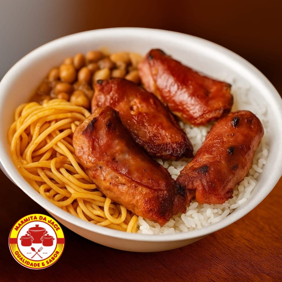 Desfrute de uma 'Marmita de Filé de Frango - 600gr', cuidadosamente preparada para agradar ao seu paladar. A estrela do prato é o filé de frango grelhado, suculento e cozido à perfeição, pesando cerca de 100 gramas. Como acompanhamento, temos 150 gramas de um delicioso feijão de caldo, rico e aromático, e 200 gramas de arroz branco, macio e soltinho. Além disso, incluímos 150 gramas de macarrão saboroso. Todos os ingredientes são selecionados com o maior cuidado para garantir a qualidade. Participe da nossa categoria 'Marmitas do Dia' e aproveite um desconto de mais de 20%! -------------------------------------------------------------------------------------------------------------- Marmita - comida - Omelete - Queijo - frete - cozinha rápida - Desconto - Ofertas - bom e barato - Frango - Carne - Massas - Italiana - Brasileira - Delivery - Caseira - Almoço - Feijão