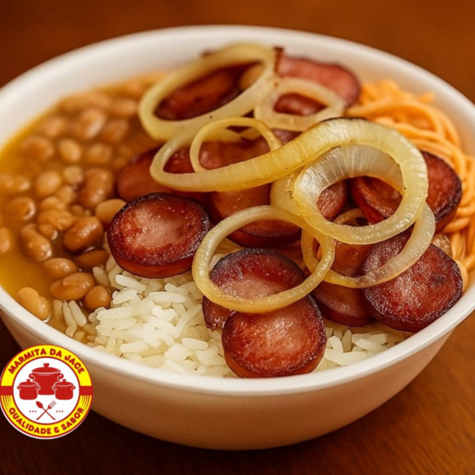 Desfrute de nossa deliciosa Marmita de Calabresa Acebolada, com generosos 600g. A calabresa, fatiada e acebolada com primor, é frita na hora, garantindo um sabor irresistível. Acompanhamentos à sua escolha. Sua marmita é composta por: aproximadamente 100g de proteína saborosa; 150g de feijão de caldo encorpado e delicioso; 200g de arroz branco, macio e soltinho; e macarão temperado e cozido na medida certa. Aproveite esta opção da nossa categoria 'Baratíssimo da semana', que oferece mais de 20% de desconto. -------------------------------------------------------------------------------------------------------------- Marmita - comida - Omelete - Queijo - Entrega grátis - cozinha rápida - Desconto - Ofertas - Bom e barato - Combo -Frango - Carne - Massas - Italiana - Brasileira - Delivery - Caseira - Almoço - Feijão - Saladas - Churrasco - Parmegiana - Bisteca - Hits