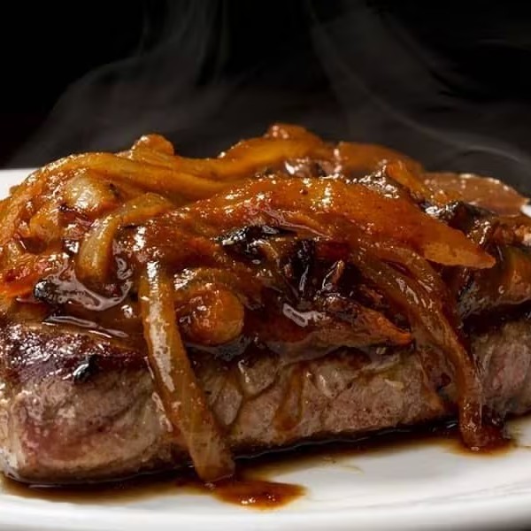 Preparamos para você uma suculenta alcatra temperada, grelhada na chapa com uma leve passada de manteiga e acompanhada de cebolas em rodelas. Essa combinação garante um bife de alcatra bastante saboroso e suculento.