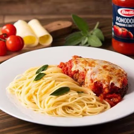 Macarronada Com Panqueca De Frango Artesanal E Molho Especial - Almoço Bom E Barato