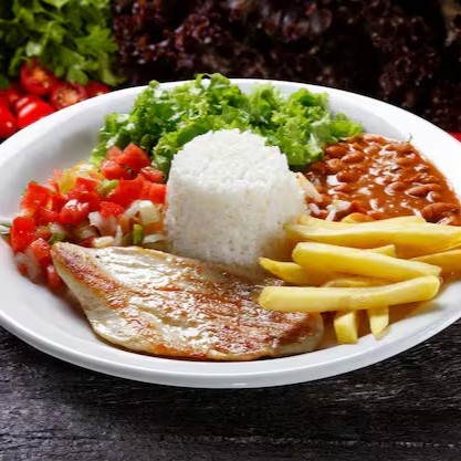Filé de frango temperado, grelhado na chapa com uma leve passada de manteiga e acompanhado de cebolas em rodelas. Além disso, para tornar sua refeição ainda mais completa, estamos oferecendo um preço promocional para incluir uma Coca-Cola 350ml gelada. A refrescante Coca-Cola irá complementar seu prato, proporcionando uma combinação perfeita entre o sabor do filé de frango e a bebida gelada. Para completar, deixe o seu Dia mais doce com uma deliciosa sobremesa caseira. Acompanha: Arroz Soltinho, Feijão de Caldo temperadinho ou Tropeiro Mineiro, Macarrão temperadinho, Farofa Crocante, Refrigerante e Sobremesa Serve bem uma Pessoa (Apróx. 550g)