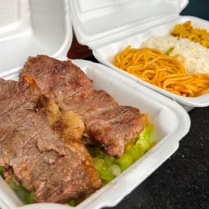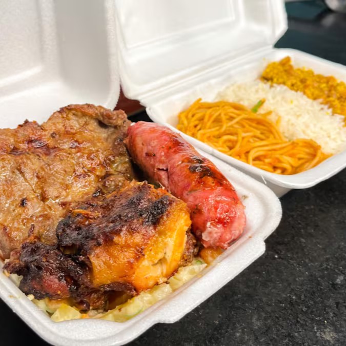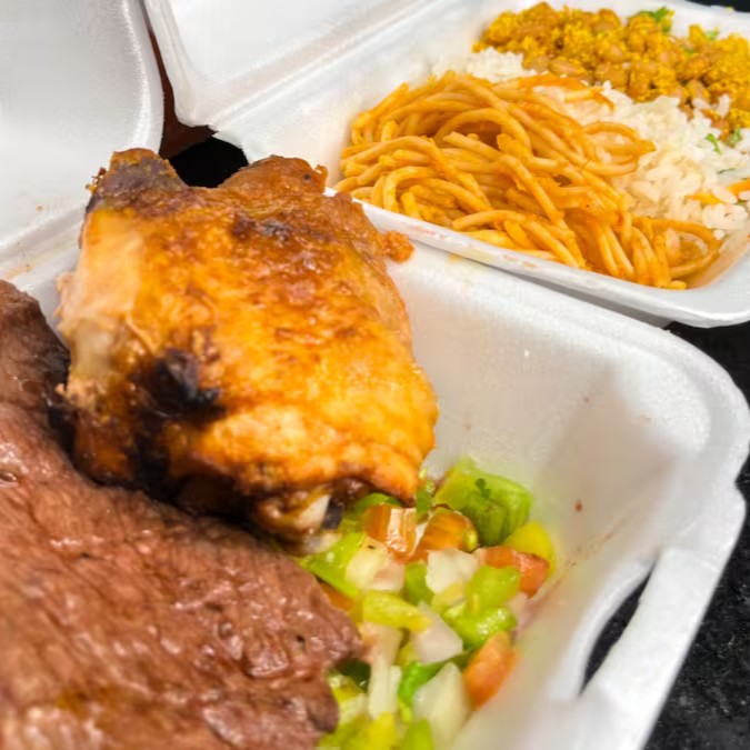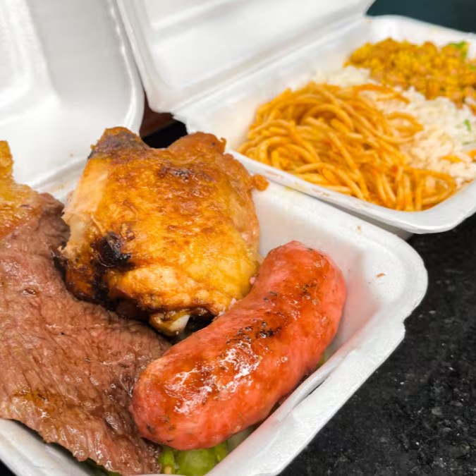 ACOMPANHA: FEIJÃO TROPEIRO, ARROZ, MACARRÃO E MAIONESE! BEM SERVIDA!