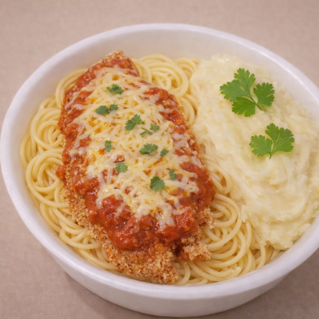 Frango A Parmegiana (espaguete E Purê