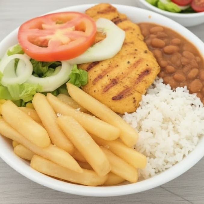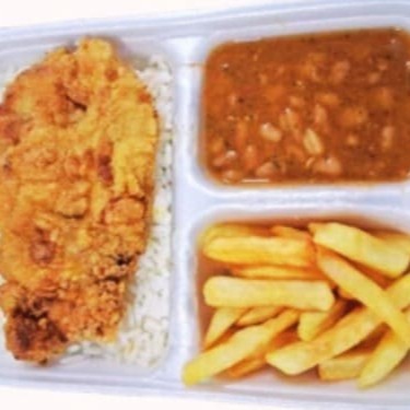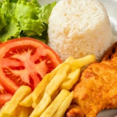 Um Clássico que todos amam Filé de Frango com Batata Frita acompanhada de Feijão de caldo com arroz de mainha, serve muito bem a uma pessoa.