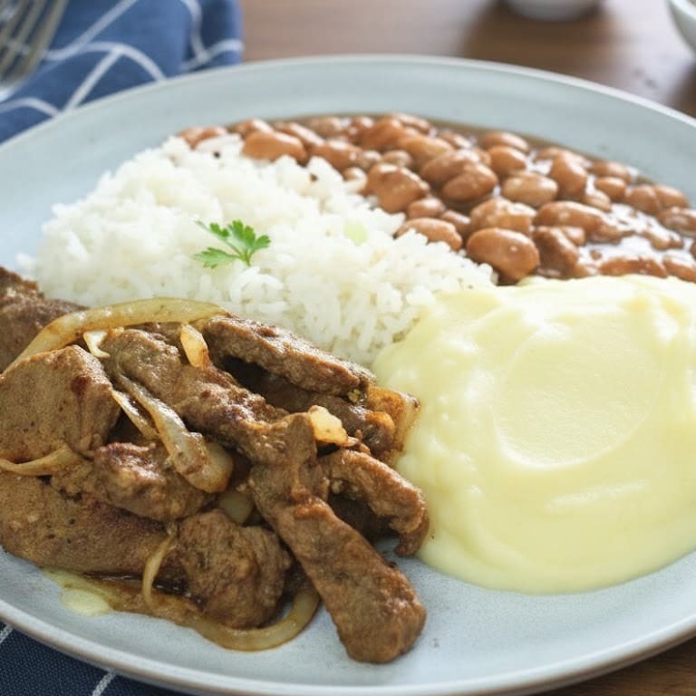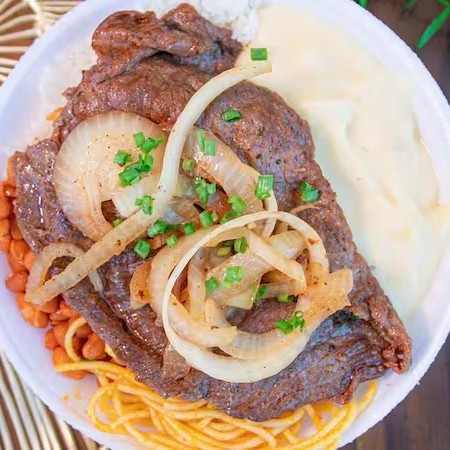 Bife Especial Acebolado Com Purê De Batata ( Marmita 1 Pessoa 590g)
