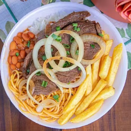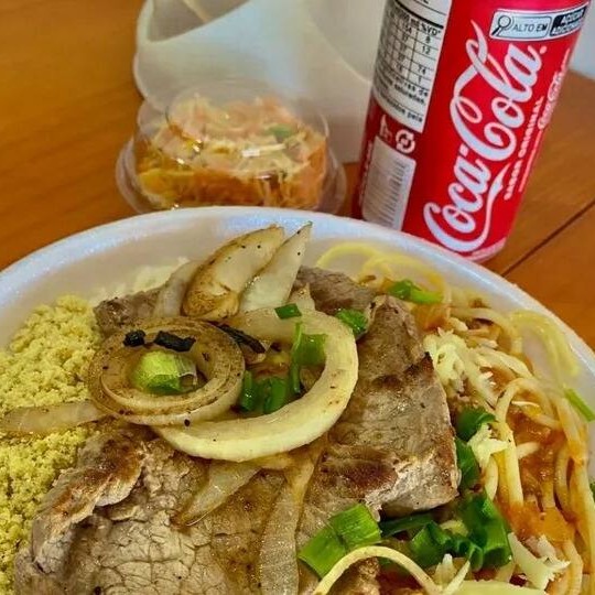 Saboroso Bife de Carne Acebolado, servido com Feijão, Arroz, Macarrão e uma refrescante Salada. A autenticidade se ver presente em cada garfada, garantindo uma verdadeira experiência de comida caseira. Nossa embalagem Pt 102 é perfeitamente dimensionada para uma pessoa. Esperamos proporcionar uma experiência culinária inesquecível para você. Aproveite nossas constantes promoções e descontos! Além disso, oferecemos entrega grátis em um raio de até 2km. Um convite irrecusável para degustar o melhor da culinária caseira!