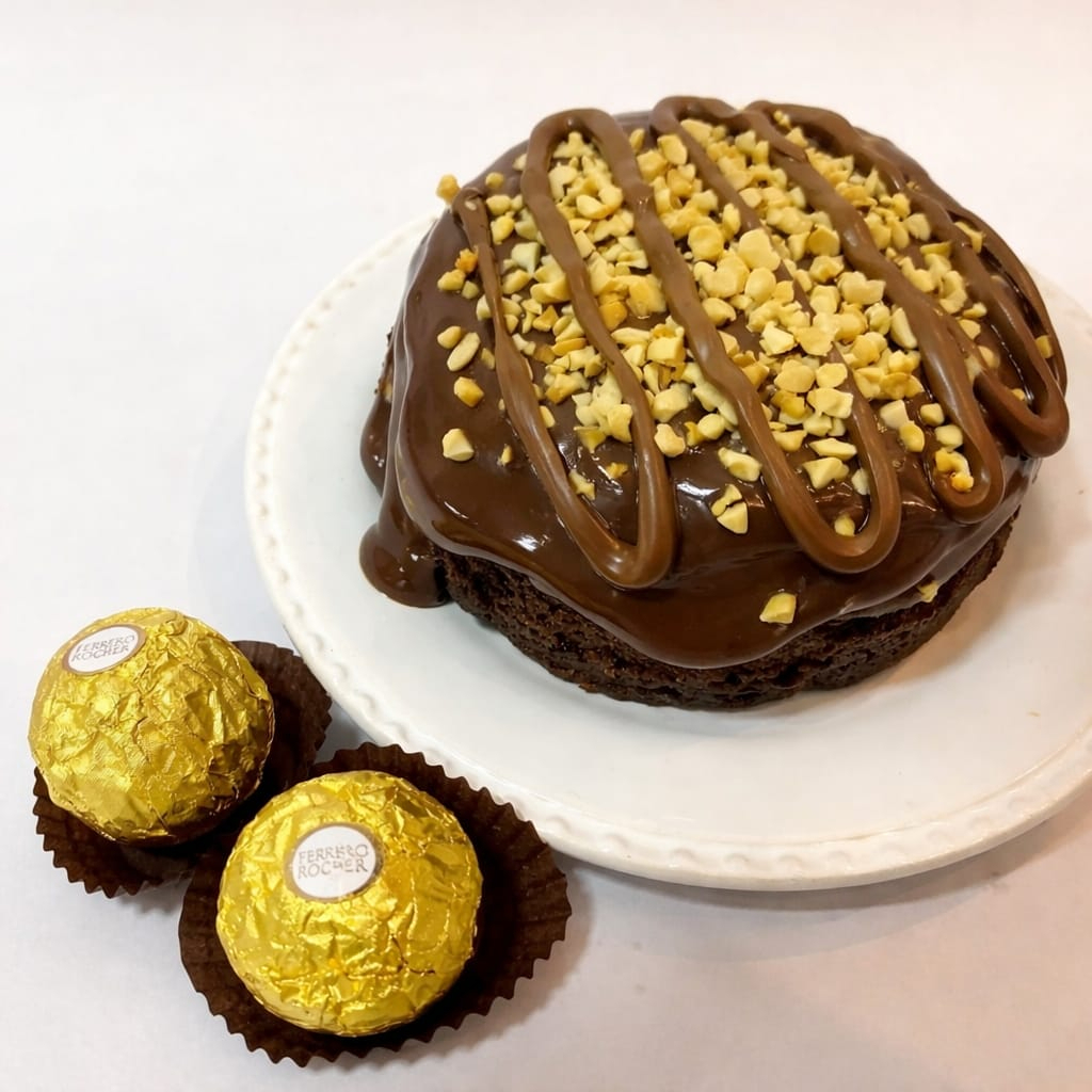 Bolo vulcão inspirado no Ferrero Rocher, com massa amanteigada super macia, coberto com muito chocolate cremoso, Nutella e toque de amendoim. Uma combinação intensa e simplesmente irresistível.