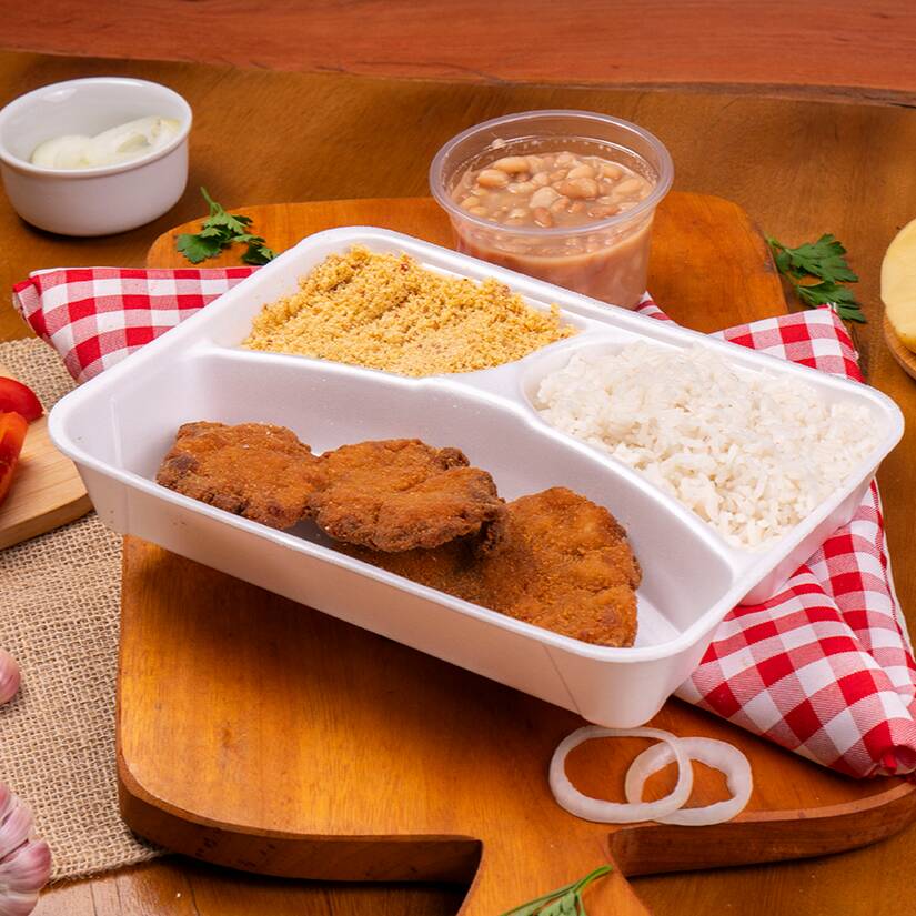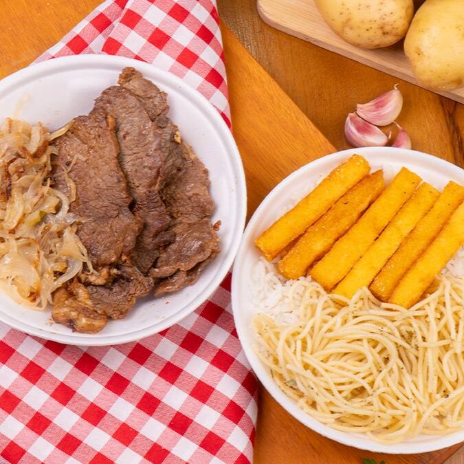Nosso contra filé acebolado com aquele sabor especial e exclusivo da vovó . Escolha até 2 acompanhamentos que serão enviados dentro de uma marmita com divisórias de isopor.