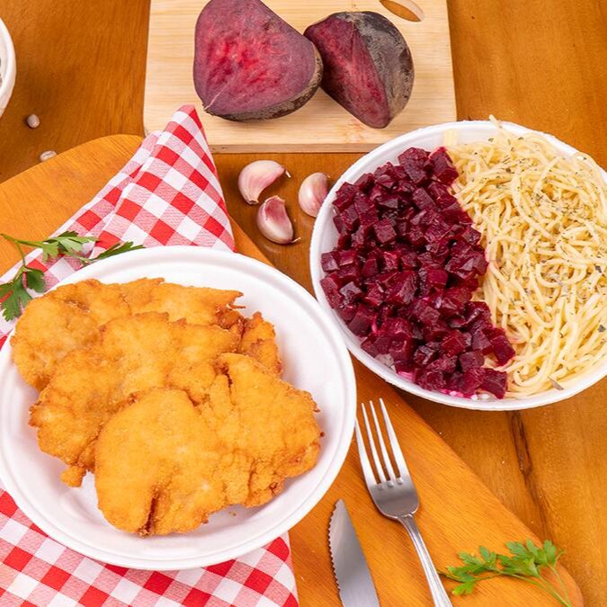 Saboroso e imbatível, nosso prato caseirinho mais vendido: a Milanesa de frango ! Escolha até 2 acompanhamentos que serão enviados dentro de uma marmita com divisórias de isopor.