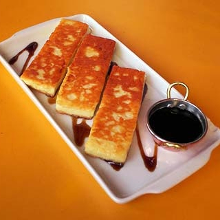 Tiras de queijo coalho selado na brasa com uma camada de melaço da melhor qualidade! Muito show de bola!